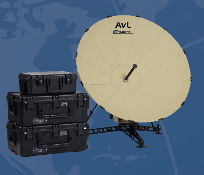 RECON 1.3M: 1.3m manual/auto-acquire tri-band terminal Pack into 2 airline checkable cases