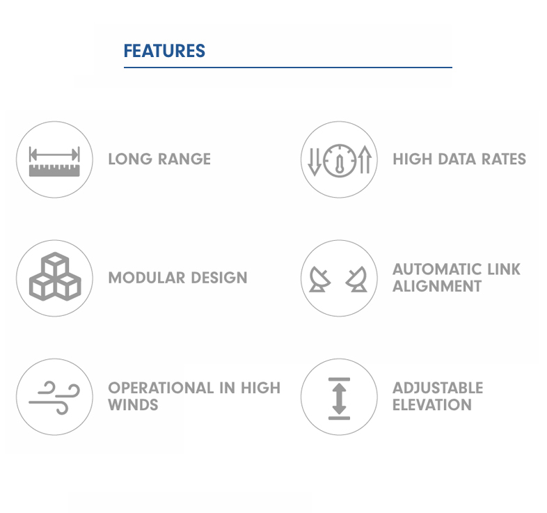 Utilizing this system, a trained two-man crew can achieve set-up and link activation in 45 minutes, providing up to 210 Mbps over-the-horizon communications well beyond the reach of other terrestrial transmission systems.